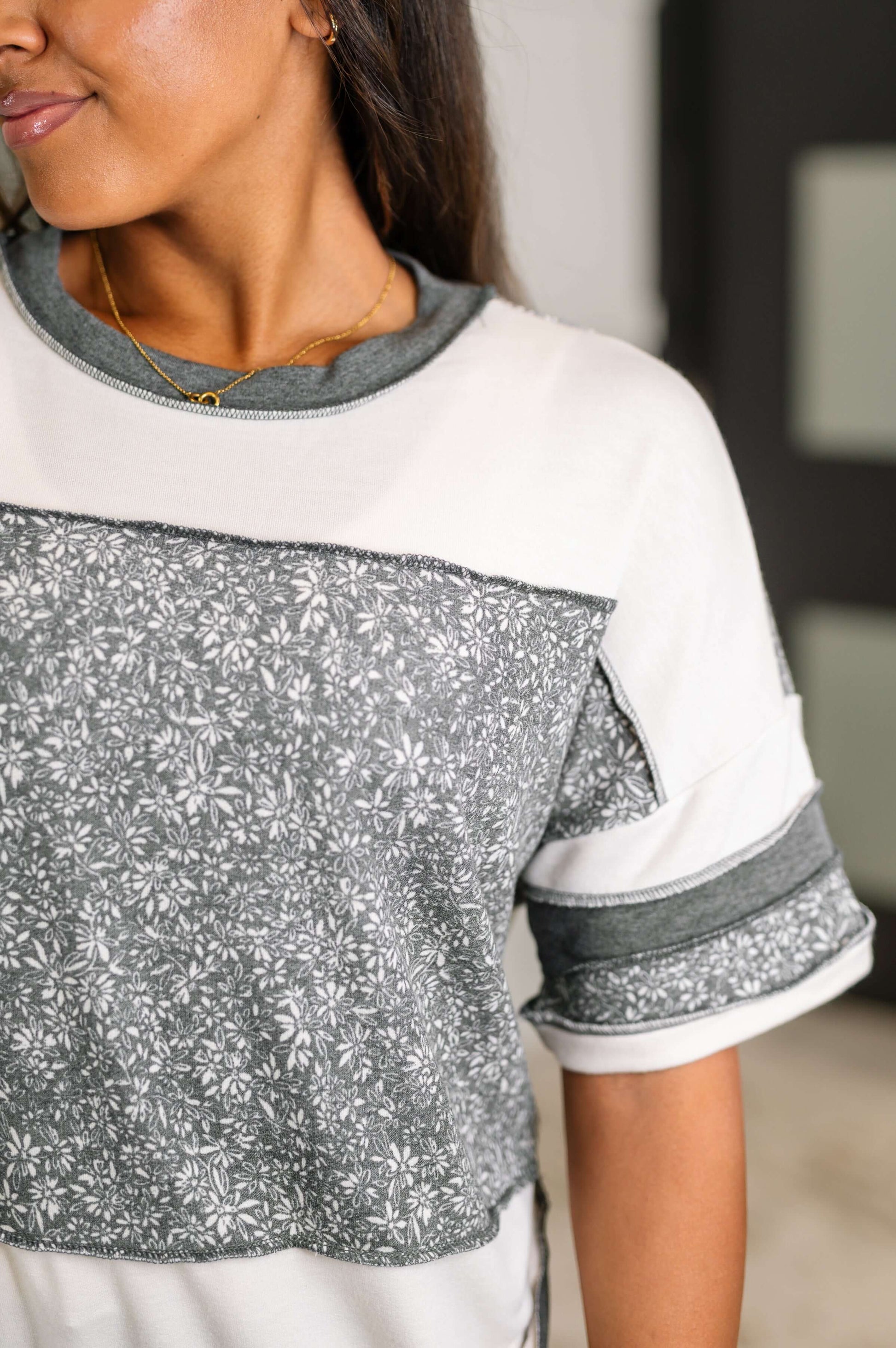 Stay effortlessly stylish with our Patch Me If You Can Drop Shoulder Top! Made with lightweight brushed French terry for ultimate comfort, this top features a banded round neckline, drop shoulder for a relaxed fit, and exposed seam details for added edge. Complete with banded sleeve cuffs and hem for a flattering silhouette.